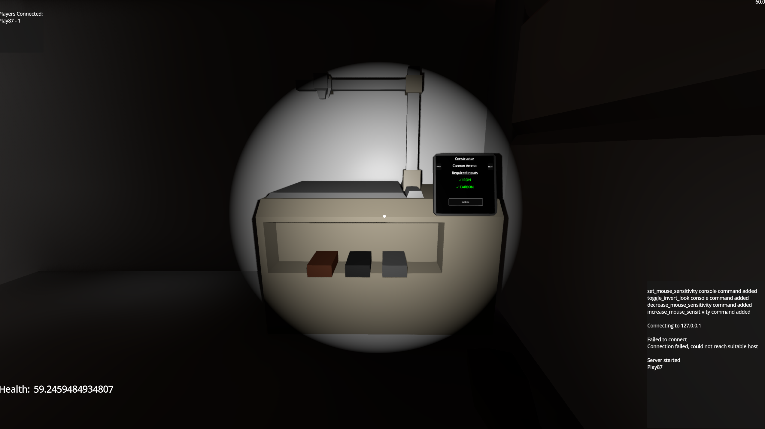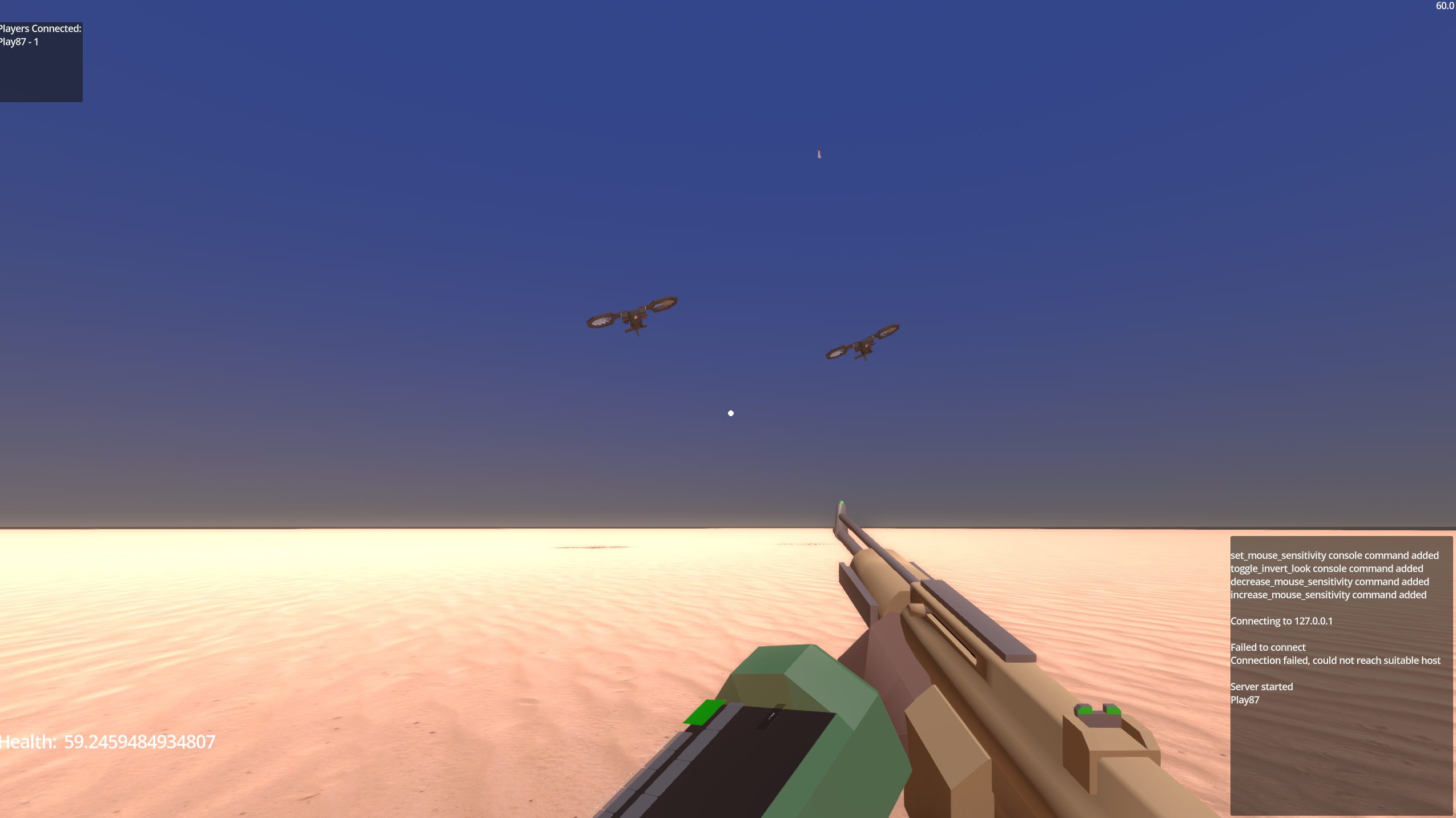 Enemy - One type of enemy so far, a flying drone that fires dumbfire rockets, tracking you by your emissions. It doesn't really aim the rockets, it just fires in your general direction for now. Kill them and salvage their parts to make more ammo and keep going. The spawning factory is indestructible for now. It'll churn out a new drone every 30 seconds until there's 3 at once.